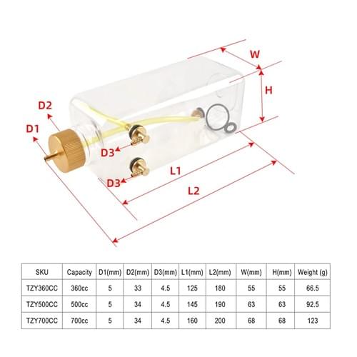 LHODR Fuel Tank Transparent Plastic Bottle 360/500/700 ML/CC CNC Aluminum Alloy for